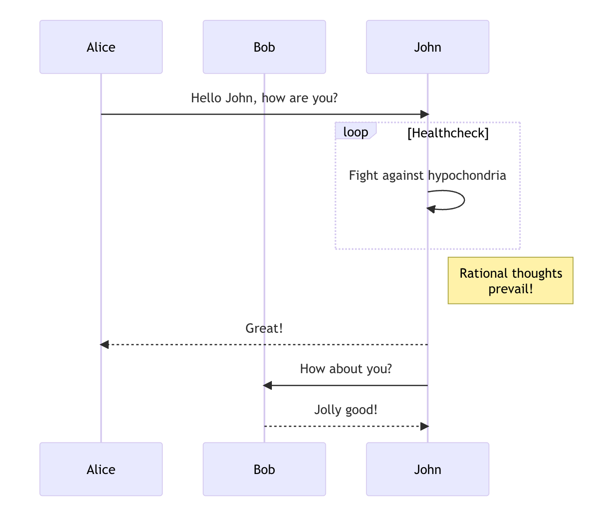 John->>John: Fight against hypochondria