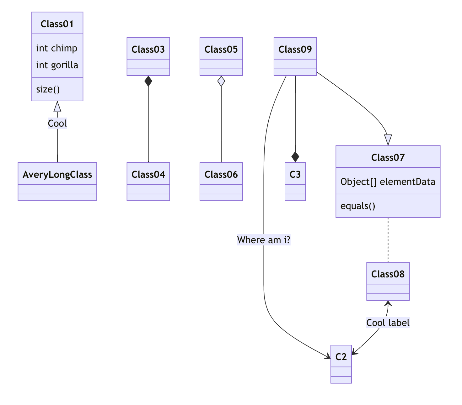 Class01 <|-- AveryLongClass : Cool