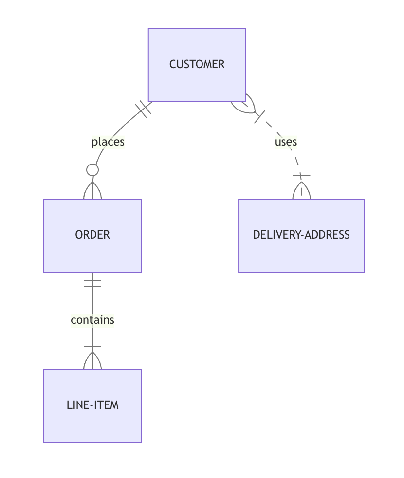 ORDER ||--|{ LINE-ITEM : contains