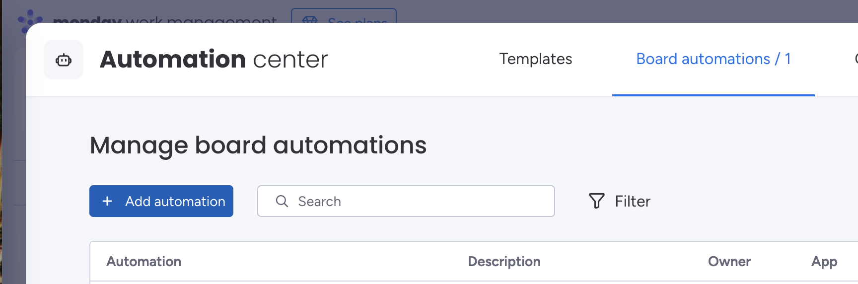The recipe can be also be used by pressing the + Add automation button on the board automations screen: