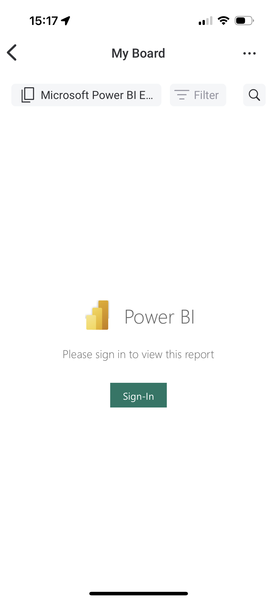 The Power BI Sign-In screen will be displayed whenever you select the app: